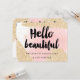 Un certificat cadeau moderne et élégant hello belle avec une typographie moderne de style brosse manuscrite sur un fond chic et élégant avec des paillettes dorées.