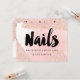 Un carte de visite moderne, élégant certificat cadeau beauté ongle de beauté avec lettrage à la main moderne typographie de style brosse sur une parties scintillant luxueuse et tendance rose or brillent les coups de pinceau et l'aquarelle rose pastel. Si vous avez besoin de personnalisation, n'hésitez pas à me contacter