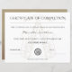 Certificat d'achèvement élégant pour la réalisation de cours de musicien saxophoniste avec illustration saxophone. Texte et logo à personnaliser. Couleurs principales : doré, beige et gris.
