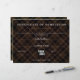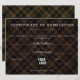 Certificat d'achèvement maniable et élégant avec motif Tartan. Couleurs : noir, marron. Assurez-vous d'écrire à la main avec un stylo blanc ou argent.