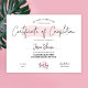 Certificat de fin féminine avec arrière - plan d'aquarelle rose élégant. Parfait pour les bourses d'études pour les cours professionnels. Utilisez-le pour obtenir un certificat de foufe ou un diplôme de salon de beauté. Cette conception de certificat d'accréditation comprend une police manuscrite moderne et un design de filigrane et de l'espace pour vos détails d'entreprise et votre logo. Parfait pour créer des bourses d'études pour vos étudiants.