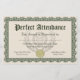 Parfait Prix de fréquentation en vert et bronzé avec un sceau de couleur or. Montrez vos remerciements et félicitations aux étudiants et au personnel avec ce certificat officiel personnalisé et personnalisé. Ajoutez votre propre texte de détail en ligne, et commandez des certificats personnalisés imprimés, faits pour votre cérémonie.