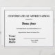Il s'agit d'un prix modèle pour un certificat d'appréciation. Il contient du texte que vous pouvez modifier pour afficher le nom du destinataire dans un script élégant. Vous pouvez également modifier l'autre texte pour customiser le prix pour votre occasion et votre organisation. Il y a une ligne pour la personne qui donne le prix à signer. Vous pouvez également faire imprimer le nom et le titre de cette personne sous la ligne. Une image d'affichage se trouve en bas, que vous pouvez remplacer par le logo de votre organisation. Le papier est blanc. Le texte est noir.