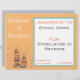 Un certificat de prix de lecture coloré qui convient à un enseignant pour une présentation en classe ou en assemblée scolaire. Ce certificat orange présente une jolie illustration d'enfants avec des livres de bibliothèque et est capable d'être personnalisé pour inclure le nom de l'élève et l'accomplissement personnel. La date et le nom de l'enseignant peuvent également être personnalisés. Simple et facile à remplir en ligne. Bonne ressource d'enseignant.