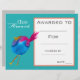 Un certificat de récompense de classe moderne et élégant avec une image d'oiseau à l'aquarelle adorable, parfait pour encourager un jeune élève. Vous pouvez écrire vos propres détails. Une excellente ressource pour tout type d'enseignant en classe.