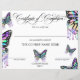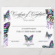 Certificat d'achèvement Prix Cours Complété avec monarque papillon pour entraîneur de vie, cosmétiques, salon de beauté, ongle, maquilleur, coiffeur styliste.. avec holographe monarque papillon