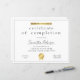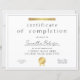 Certificat professionnel de fin de cours en blanc et or avec votre logo ou nom d'entreprise personnalisé, parfait pour un certificat de fin de cours pour tout type de cours tels que des cours de beauté, des cours professionnels et éducatifs et plus encore ! Vous pouvez également utiliser ce design de prix élégant à effet de faux or pour tout type d'accréditation. Vous pouvez modifier tout le texte, ajouter votre logo et créer des diplômes professionnels pour votre entreprise ou organisation.