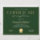Certificat de fin de formation d'entreprise moderne en vert émeraude et or avec votre logo personnalisé, parfait pour un certificat d'achèvement pour tout type de cours ou de récompense. Vous pouvez également utiliser ce design de diplôme vert et or faux professionnel pour tout type d'accréditation. Vous pouvez modifier tout le texte *sauf le mot certificat*, ajouter votre logo et créer des récompenses professionnelles pour votre entreprise ou organisation.