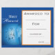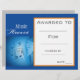 Un prix de certificat de musique moderne et design avec une image d'équipe de musique bleu vif, parfait pour encourager un jeune musicien. Vous pouvez écrire dans vos propres détails. Une excellente ressource pour n'importe quel type d'enseignant de musique.