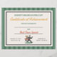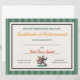 Ce "Certificat de Réussite" est le cadeau ultime et le souvenir idéal pour n'importe quelle enterrement de vie de garçon ou événement "Field Day" du marié. Avec un design de certificat classique avec un fond rayé vert et une illustration ludique d'un homme courant avec un trophée, cette récompense vous permet de reconnaître les réalisations des participants. Parmi les reconnaissances amusantes, on peut citer "Champion de Cornhole", "Meilleur esprit d'équipe", "Pire coordination" ou même "Plus susceptible de se claquer un jarret".