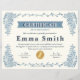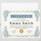 Un certificat de réalisation raffiné présentant une bordure florale bleue élégante et une mise en page classique. Parfait pour reconnaître les réalisations, les récompenses des employés, la réussite scolaire, l'appréciation de l'entreprise ou les événements formels. Ce design intemporel offre un aspect professionnel et sophistiqué adapté aux écoles, aux entreprises et aux organisations.