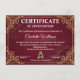 Certificat de Reconnaissance des Employés Rouge Or