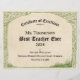 Certificat d'excellence Meilleur Enseignant de Tou