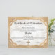 Certificat d'Eglise Pasteur du ministère de l'Ordination