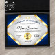 Primez quelqu'un avec ce Professional & Elegant 8.5x11 Certificat d'honneur Prix Flyer avec des couleurs or et bleu, et un arrière - plan gris dégradé. Comprend deux médailles d'or.