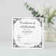 Carte de certificat d'authenticité pour l'art avec une bordure de style vintage orné.