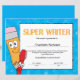 Célébrez la réussite de votre élève ! Nos certificats de reconnaissance de l'élève Super Writer ont été créés avec ces sentiments.