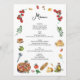 Menu avec pizzas aux pâtes et illustrations culinaires italiennes.