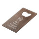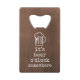 Un ouvre-bouteille personnalisé avec le dicton "It's Beer O'Clock Somewhere." écrit sur un arrière - plan de texture bois.