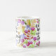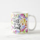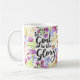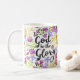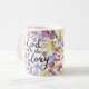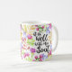 Front of mug a un design moderne de typographie de style lettré à la main avec des mots, "It is Well with my soul" mots de l'hymne bien connu. Le type est entouré par une bordure colorée de fleurs d'aquarelle sur tous les côtés. Back a dupliqué le motif de fleurs avec des mots, "To God Be The Glory" dans le même style.