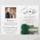 Ce magnifique programme de mariage est à la fois moderne et élégant. Le design plié do-it-yourself est doté d'une écriture moderne sur la première lecture "we do" avec le nom du couple et le mariage date/lieu. Il y a une photo d'un magnifique rose vert émeraude à long tige réfléchissant dans un bassin d'eau avec vagues et ondulations. L'intérieur a la même fleur qu'un arrière - plan filigrane avec de l'espace pour la cérémonie et les détails de la fête de mariée. Le dos a votre photo, avec l'espace pour une note de remerciement personnalisable, et une note commémorative pour reconnaître les proches perdus. Sophistiqués, élégants et chics, ces programmes ajouteront classe et style à votre célébration mariage. VEUILLEZ NOTER : Ces programmes sont livrés sous forme de feuille de papier plate et devront être pliés. Il y a une variété de choix de papier, mais l'option semi-brillant est un stock de carte légère et sera difficile à plier proprement, donc nous vous recommandons de choisir une autre option.