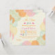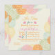 Une belle invitation comportant les groupes faisants le coin d'imaginaire fleurit dans le rose, vert orange et le bleu au-dessus d'un arrière - plan mince de rayure. Perfectionnez pour n'importe quelle célébration ou occasion féminine.