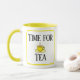 C'est la tasse parfaite pour un buveur de thé dont la couleur préférée est le jaune. Il a les mots : Time for Tea écrit à l'intérieur d'un carré jaune aux bords arrondis, et décoré d'une tasse de thé vapeur en jaune assorti. Vous pouvez personnaliser l'autre côté de la tasse avec votre nom. Le style est simple, moderne et amusant.