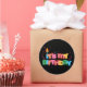 Un grand cadeau pour fêter un anniversaire ou faire savoir à tout le monde que c'est votre jour spécial. Le design coloré comporte les mots "It's My Birthday", une bougie d'anniversaire et des banderoles. PinkInkArt original !