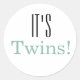Fêtez votre arrivée prochaine avec ce C'est des jumeaux! Sticker rond classique. Ce design présente le texte "It's Twins!" en lettres noires et vert jade.