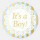 Baby shower bleu et or ou autocollants faire-part de naissance qui disent, "C'est un garçon !"