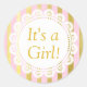 Des autocollants en baby shower rose et or ou en faire-part de naissance qui disent, "C'est une fille."