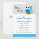 De jolies invitations personnalisées pour les douches pour bébés avec un hibou bleu illustré et le message "C'est un garçon !" en haut.