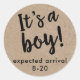 La main a écrit "C'est un garçon" en noir contre un arrière - plan en papier kraft. Personnalisez cet autocollant à utiliser à un genre révéler avec la date d'échéance prévue, ou deux autres lignes de texte. Utilisez le formulaire modèle pour ajouter vos informations. Modifiez le style, la taille et la couleur de la police à l'aide de la fonction Personnaliser It.