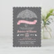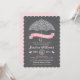 Un parapluie mignon de style de dentelle décoré des gouttes de pluie, des remous des nuages et des boulons d'allégement. Une frontière crantée accomplit cette invitation moderne de douche de bébé sur un tableau. Personnaliser avec votre propre texte. Veuillez examiner mon magasin pour assurer plutôt ceci. Illustration originale par le pj_design.
