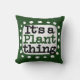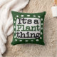 "It's A Plante Thing" est un design de texte mignon en vert avec du texte en noir et rouge, avec une forme d'accent blanc et des points blancs texturés blancs qui l'entourent.