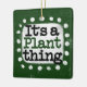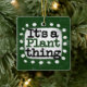 "It's A Plante Thing" est un design de texte mignon en vert avec du texte en noir et rouge, avec une forme d'accent blanc et des points blancs texturés blancs qui l'entourent.