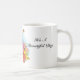 Cette tasse à café est présentée avec un joli imprimé de fleurs avec une phrase "C'est une belle journée". Customisez cet objet ou achetez tel quel. Image stock
