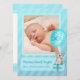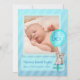Une carte faire-part bleu bébé douce avec un koala mignon, un cadeau et une image de ballon. Personnalisez avec vos détails et une photo spéciale de votre fils. La meilleure façon d'annoncer votre nouvelle arrivée à la famille et aux amis.