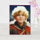 Ceci est une carte de Noël pour un jeune garçon, représentant l'image et la description d'un jeune garçon scandinave d'autrefois :