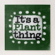 "It's A Plante Thing" est un design de texte mignon en vert avec du texte en noir et rouge, avec une forme d'accent blanc et des points blancs texturés blancs qui l'entourent.