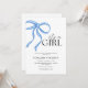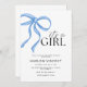 Fêtez l'arrivée d'une petite fille avec cette invitation élégante et charmante au baby shower ! Dotée d'un design pastel doux avec un arc rose délicat, cette invitation ajoute une touche de douceur à votre événement spécial. Parfait pour les parents qui aiment un mélange de bleu classique et de rose subtile.