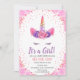 c'est une fille Unicorn Tête Florale Fleurs Pink Pastel Aquarelle Baby shower Invitation