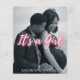 Minimaliste et moderne - Texte cursif rose indiquant C'est une fille. Personnalisez avec votre propre texte et photo ! Idéal pour un cadeau de baby shower ou d'annonce de grossesse / annonce de révélation du sexe.