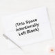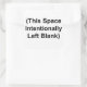 Une feuille de six autocollants de 3 po x 3 po avec les mots "This Space intentionnellement Left Blank" imprimés dessus.