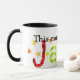 Une tasse blanche de bonne qualité avec jante noire et poignée. Le design est un collage de papier peint à la main avec le nom Jacob en grandes lettres parsemées d'étoiles. Lave-vaisselle et micro-ondes. Voir aussi carte de voeux et cadeaux correspondants.