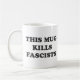 Les enfants ont toutes leurs activités hors programme. Vous avez toutes vos émissions de TV. L'activisme désolé, nos danse-cartes sont plein. Mais j'ai vu un problème qui a eu besoin d'une solution, et j'ai obtenu à la pensée, "tout le monde fait l'heure de boire du café, pourquoi ne pas les aider pour maximiser cette fois ?" Ainsi, j'ai inventé cette tasse. Maintenant vous pouvez tuer le fascisme tandis que vous appréciez votre commerce équitable organique.