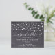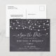 Réservez la date! Annoncez votre mariage à vos amis et à votre famille avec ces écharpes rustiques à budget et des lampes à cordes enregistrer la date des cartes postales. Ces cartes postales budgétaires doivent être postées en tant que cartes postales surdimensionnées, ce qui peut entraîner des frais d'affranchissement standard, mais elles n'ont pas besoin d'une enveloppe ou d'une étiquette d'adresse de retour. Ces lumières à cordes uniques et mariage en ardoise de tableau à damier sauvegardent les cartes fera une impression durable, vos invités s'assureront de sauver la date! DROIT D'AUTEUR © 2020 Judy Burrows, Black Dog Art - Tous droits réservés. Budget String Lights Mariage rustique Enregistrer La Date Carte Postale