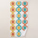 Ce kit de serviettes est muni d'un linge orange, d'une serviette dorée et d'une serviette de bain au design moderne du milieu du siècle, de cercles reliés entre eux formant une chaîne avec des cercles blancs et colorés à l'intérieur. Vous voulez des couleurs différentes ? Message-moi.