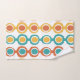 Cet ensemble de serviettes a un design moderne du milieu du siècle de cercles reliés ensemble faisant une chaîne avec des cercles blancs et colorés à l'intérieur. Vous voulez des couleurs différentes ? Message-moi.
