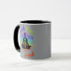 Une tasse à café avec une image méditative centrée autour des chakras, avec l'expression "Break from the Grind" centrée sous le design. Les chakras représentent des centres d'énergie dans le corps, suggérant une fuite pacifique du stress quotidien par l'équilibre spirituel et la pleine conscience.